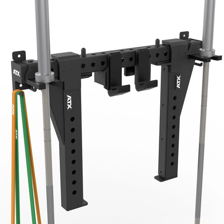 Die ATX® Zubehörablage wurde speziell für die 700er-Serie entwickelt und sorgt für maximale Ordnung bei minimalem Platzbedarf. Ob J-Hooks, Spotter-Arms oder Hantelstangen – mit dieser Wandhalterung ist Ihr Equipment sicher, griffbereit und übersichtlich verstaut.